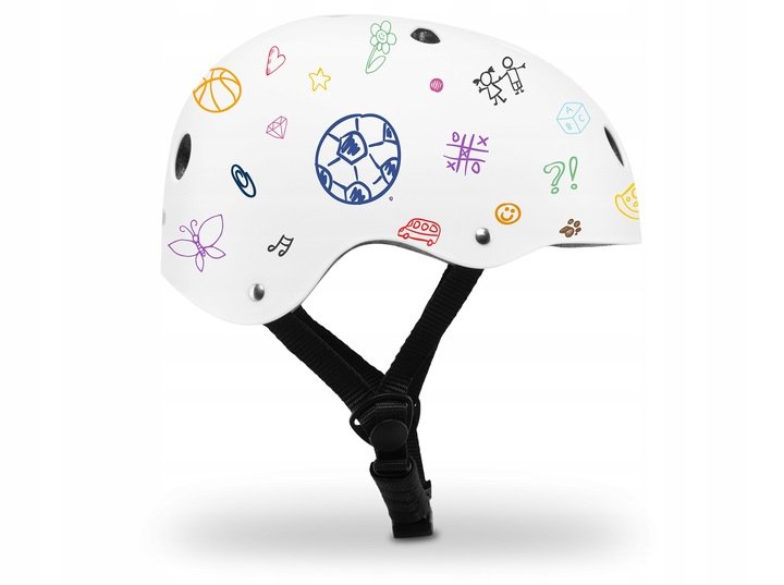 Certyfikowany kask dziecięcy z regulacją i miękką wyściółką na podbródek, z możliwością ozdabiania pisakami lub kredą- kolor biały