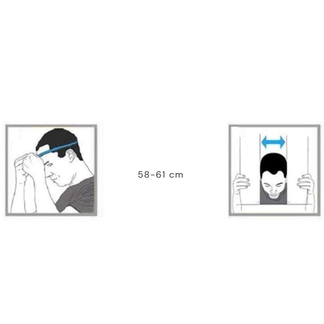 Pomiar szerokości głowy: zmierz szerokość głowy, używając dwóch kartonów, jak pokazano na ilustracji.