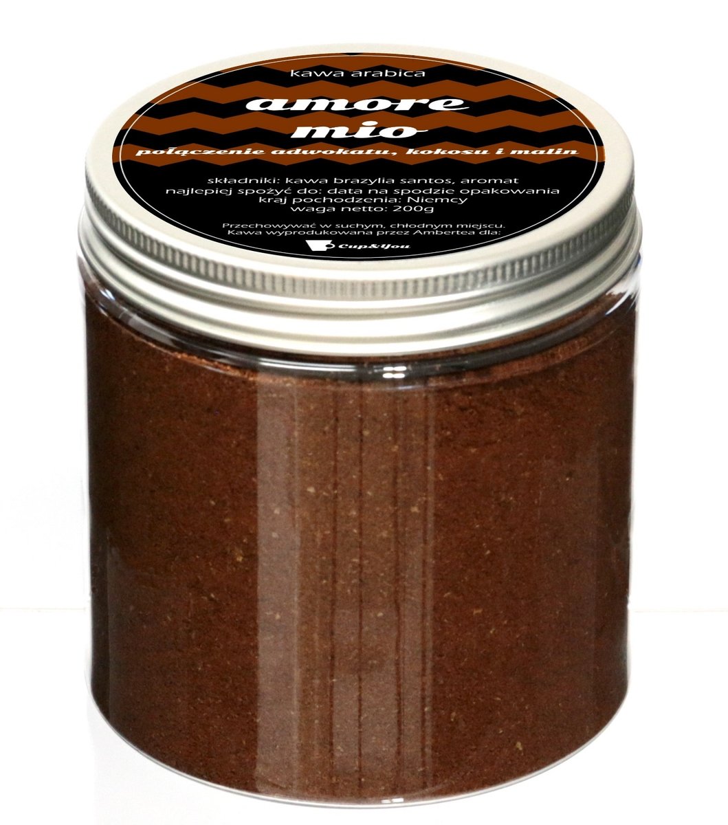Kawa aromatyzowana AMORE MIO mielona deserowa PREMIUM ARABICA Cup&You 200g Aromatyczna Arabica o smaku adwokata z dodatkiem kokosa i malin. Kremowa i ...