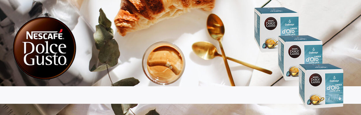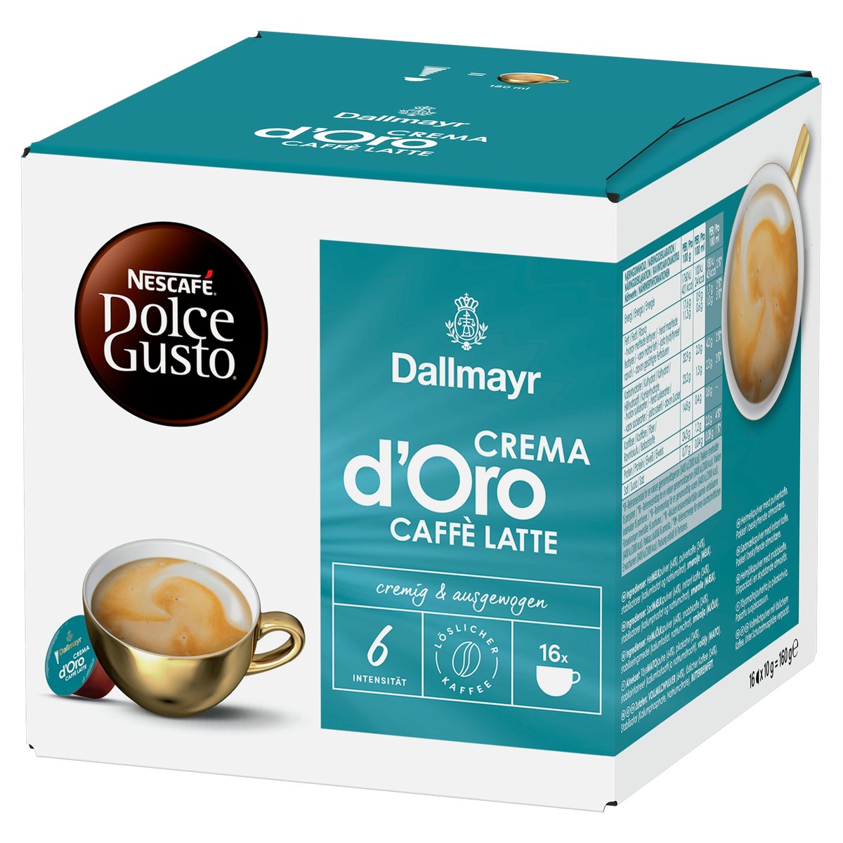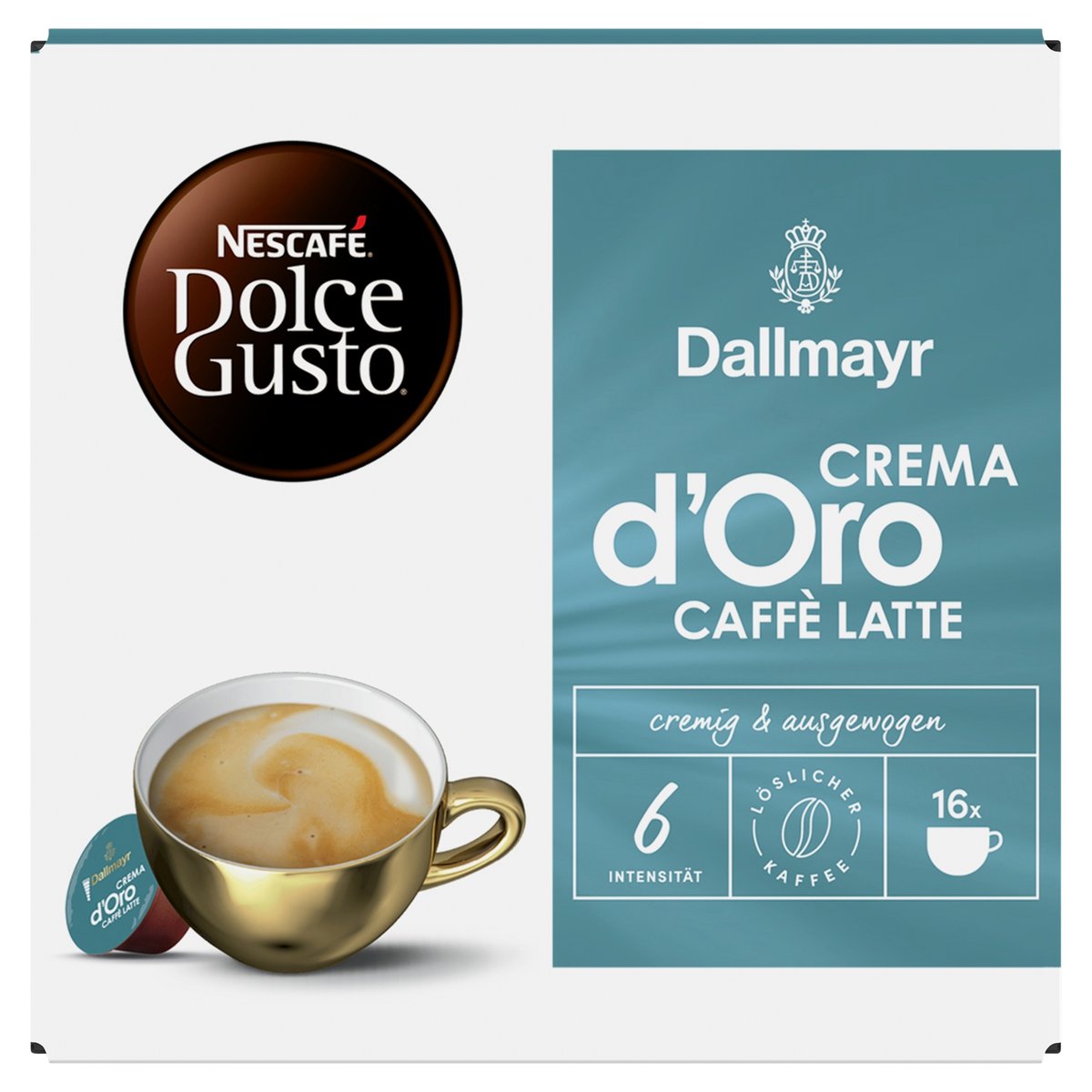 ✅ Kapsułki NESCAFÉ® Dolce Gusto Dallmayr Crema d’Oro Caffè Latte to idealne połączenie doskonałej kawy Dallmayr z łykiem mleka, które zamienia się w cudowną mleczną piankę