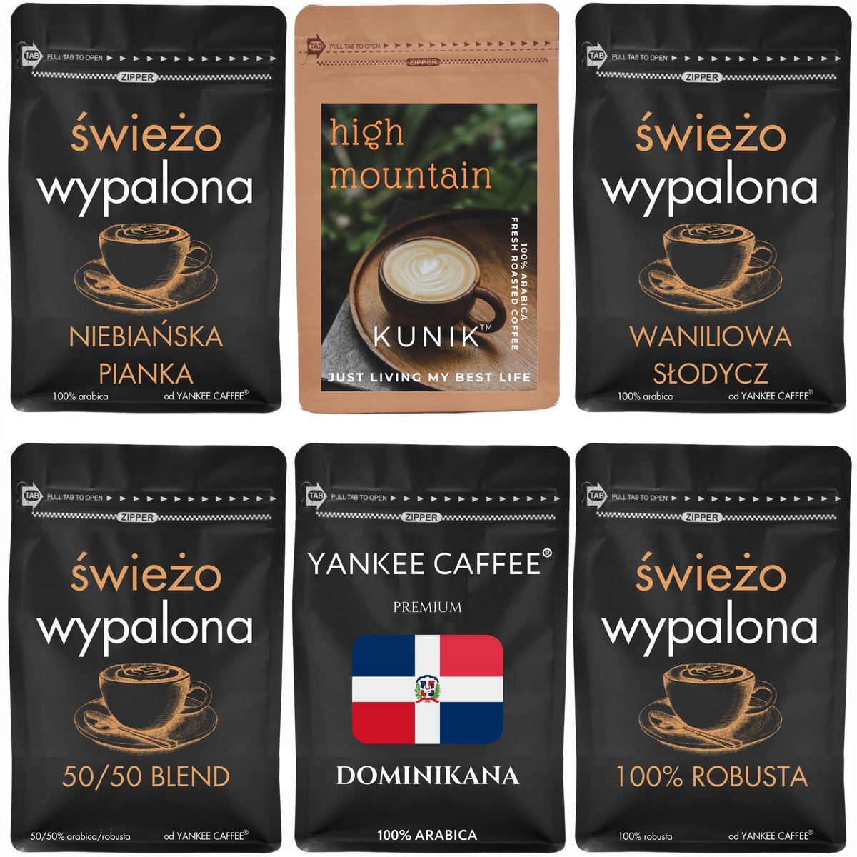 | Nazwa: | Kawa ziarnista Świeżo Palona Zestaw próbek 6x200g mix do degustacji prezent ZWa |