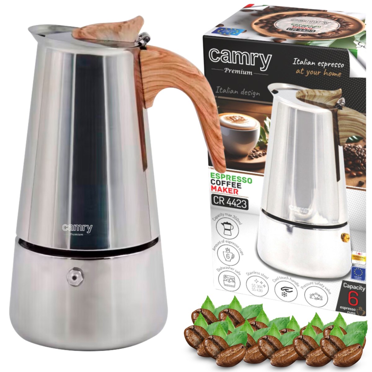KAWIARKA ZAPARZACZ DO KAWY 350ml DZIAŁA NA INDUKCJI INDUKCJA GAZ STAL NIERDZEWNA CAMRY✅ Pojemność robocza: 320ml✅ Pojemność maksymalna: 350ml✅ Działa na kuchenkach: indukcyjnych, gazowych, ...