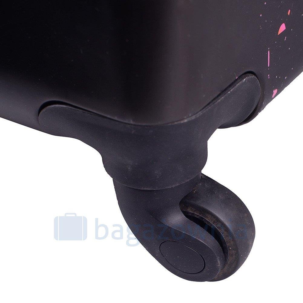 4 koła (spinner 360) (koła wykonane z gumy i PVC co dodatkowo wzmacnia je przed uderzeniami zewnętrznymi, oś na której zamocowane zostało koło wzmocniona pyłem diamentowym)