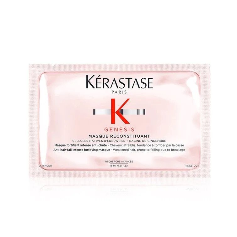 Maska Kérastase Genesis Masque Reconstituant nadaje fryzurze lekkość bez obciążenia. Formuła wzbogacona komórkami macierzystymi szarotki alpejskiej i wyciągu z korzenia imbiru natychmiastowo zmiękcza i wygładza, dzięki temu włosy zyskują większy połysk i jednolitą strukturę. Włosy stają się mocniejsze, bardziej miękkie i błyszczące.