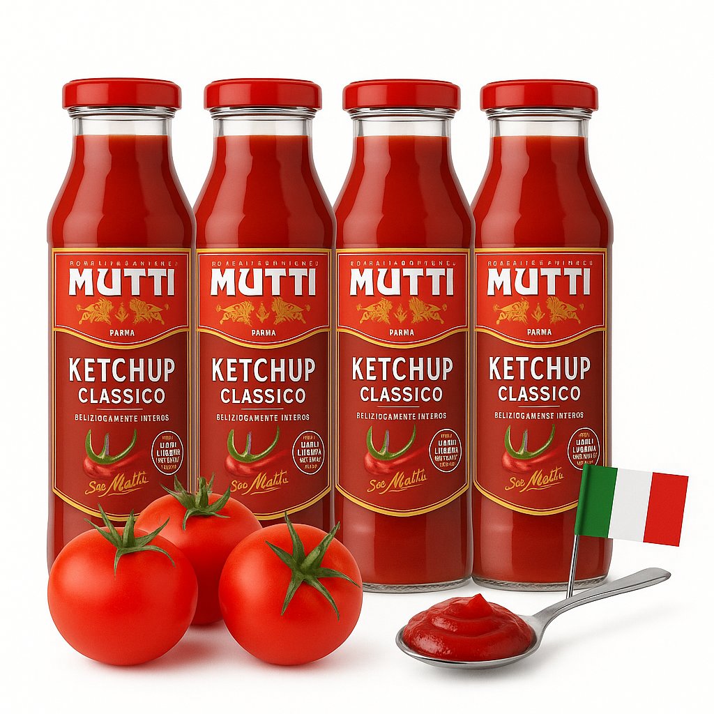 Mutti Ketchup Classico deliziosamente intenso to doskonały wybór dla miłośników autentycznego smaku pomidorów. Nasz ketchup o pojemności 300g dostępny jest w praktycznym opakowaniu x4, idealnym dla całej rodziny lub na większe spotkania. Wyjątkowa receptura łączy intensywność dojrzałych pomidorów z delikatną słodyczą, co czyni go nieodzownym dodatkiem do różnorodnych potraw – od klasycznych frytek, przez grilla, aż po wykwintne dania kuchni włoskiej. Idealnie gładka konsystencja i odpowiednia gęstość umożliwiają łatwe dozowanie. Mutti, będąc liderem w branży przetwórstwa pomidorowego, gwarantuje najwyższą jakość produktu, który jest wolny od konserwantów i sztucznych barwników. Przekonaj się, jak nasz ketchup wzbogaca smak każdej potrawy.
