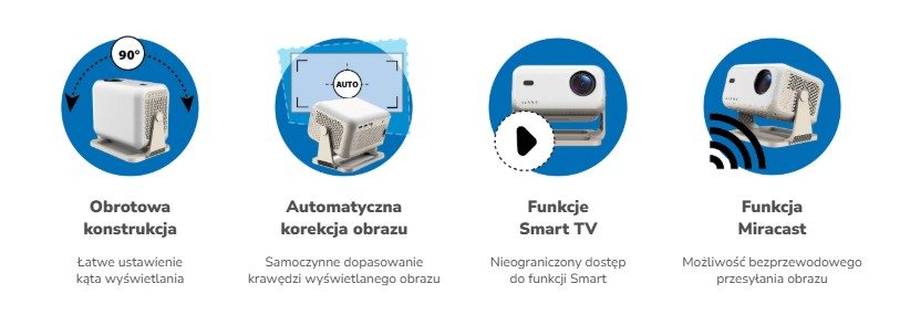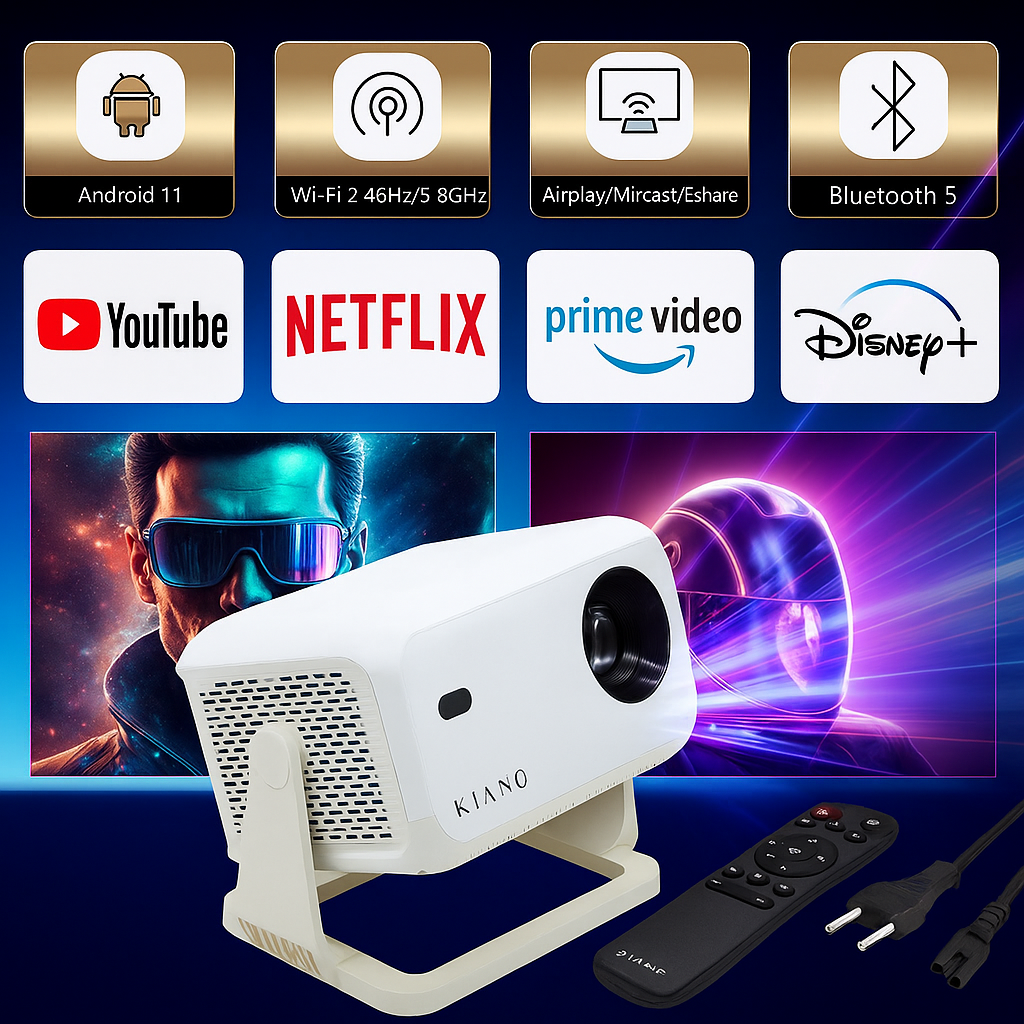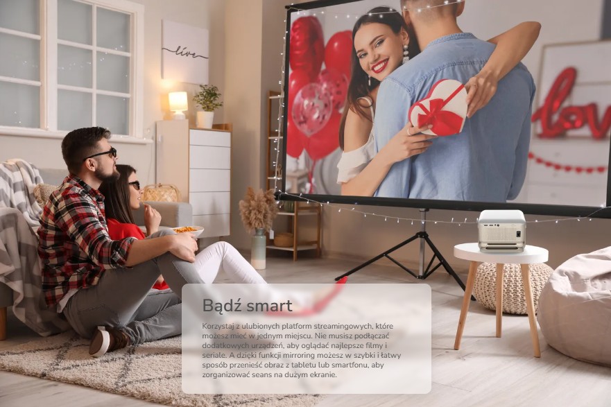 Koniec z przewodami! Dzięki zintegrowanemu modułowi Wi-Fi możesz bez problemu przesyłać filmy, zdjęcia, dokumenty i gry w jakości FULL HD – bezpośrednio ze smartfona, tabletu lub komputera. Projektor obsługuje transmisję bezprzewodową zarówno w paśmie 2,4 GHz, jak i 5 GHz, co przekłada się na stabilne połączenie i płynne odtwarzanie.