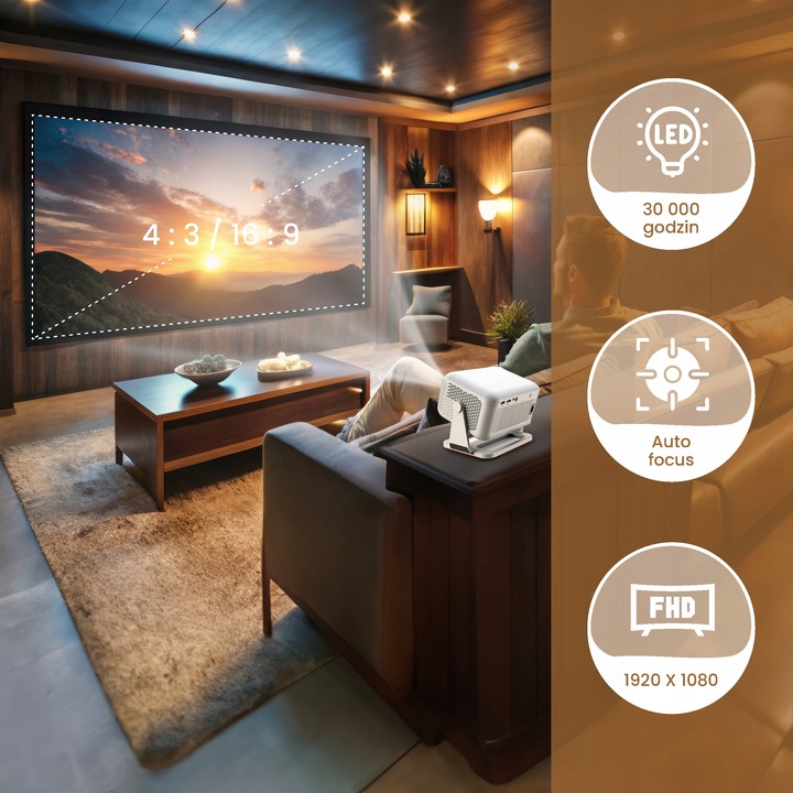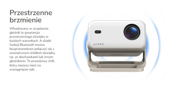 Aby w pełni oddać klimat domowego kina, projektor został wyposażony w wysokiej jakości 3W głośnik, który gwarantuje synchronizację dźwięku z obrazem i pełne zanurzenie w wyświetlanych treściach.