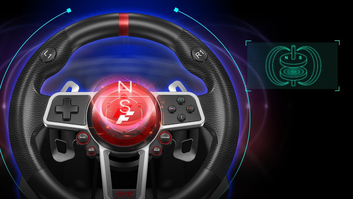 Zanurz się w realistyczne doświadczenie dzięki funkcji sprzężenia zwrotnego, która dostarcza wibracje i informuje o sytuacji na torze. Podwójne silniki zapewniają niezwykle realistyczne odczucia podczas jazdy.