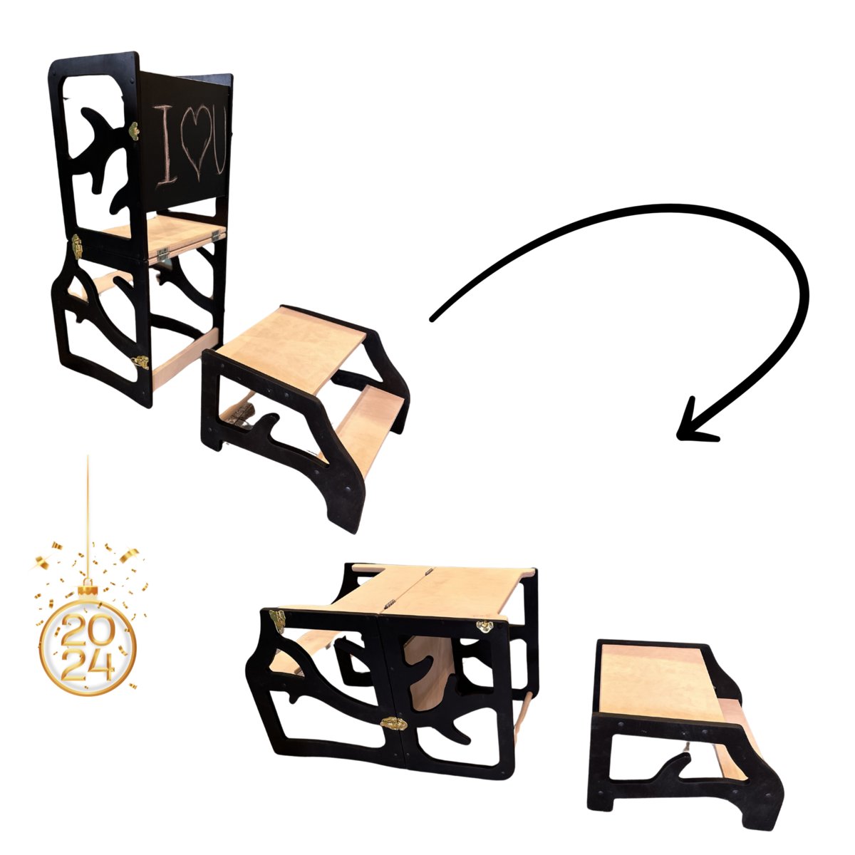 KITCHEN HELPER 5w1 dla dzieci do jedzenia zabawy POMOCNIK KUCHENNY solidny PREMIUM CZARNY Kitchen helper – niezbędny produkt dla małych pomocników w kuchni - produkt 5w1! KOLEKCJA TREE: BIURKO, ...
