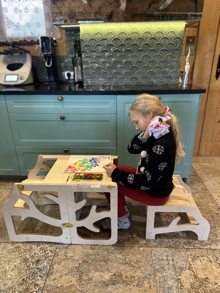 Właśnie zrecenzowałem KITCHEN HELPER pomocnik kuchenny biurko krzesełko podest tablica dla dzieci 5w1 sosna lakierowany