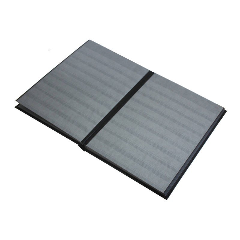 Posiada 32 strony, każda wyposażona w 9 przezroczystych pasków na znaczki. Kolor kart czarny.