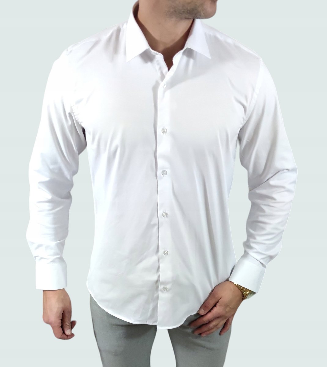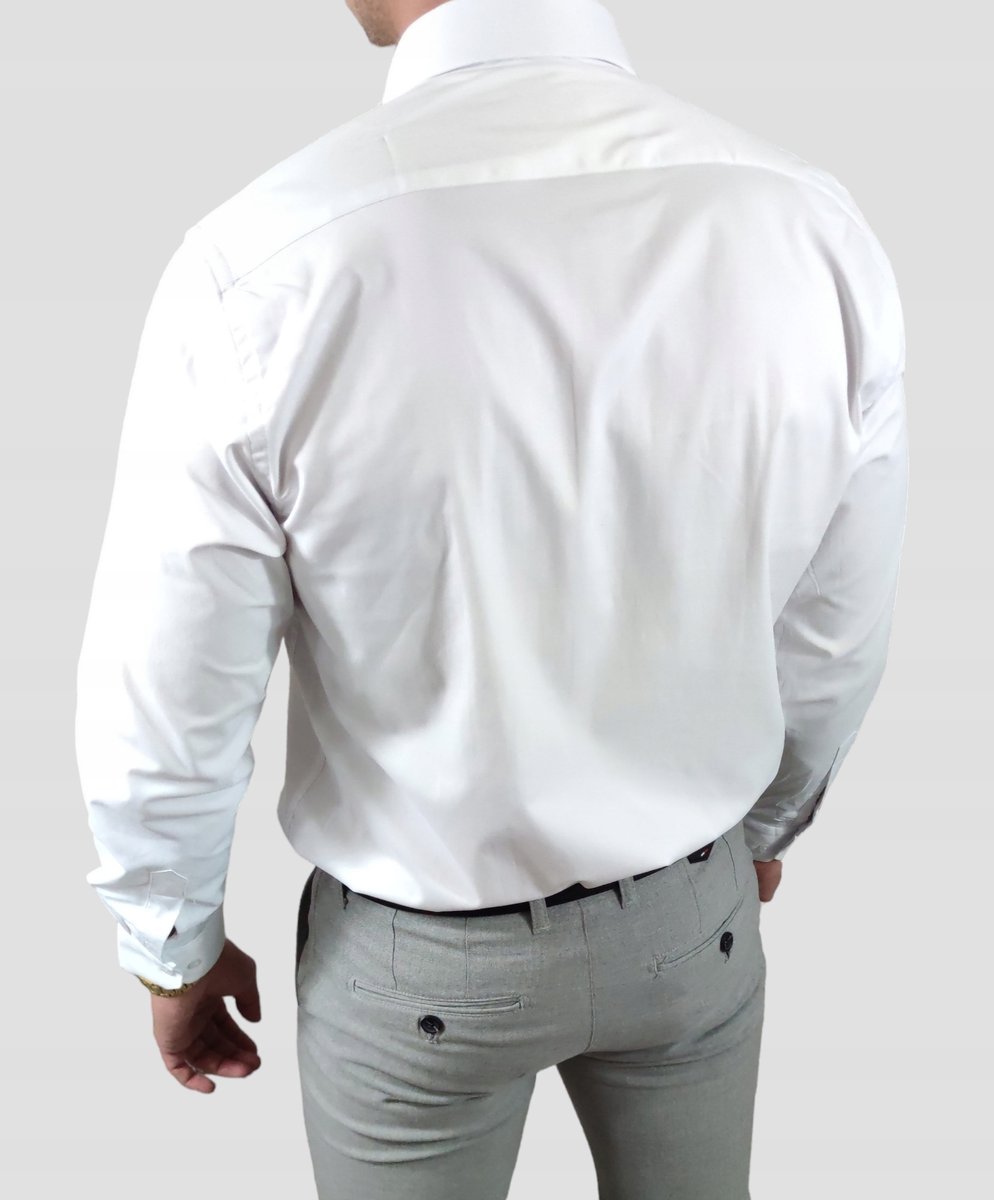 - Koszula męska krój- regular- prosty skład materiału- bawełna/poliester/elastan 57/40/3% rękaw- długi kołnierzyk- klasyczny mankiety- guziki Klasyczna koszula o prostym i luźnym kroju. Wykonana z delikatnego, lekko błyszczącego, bardzo przyjemnego w dotyku materiału. Idealnie sprawdzi się jako element męskiej, bardziej eleganckiej stylizacji. wymiary- rozmiar M (kołnierzyk 39-40)- szerokość mierzona pod pachami 57cm, szerokość w talii 55cm, długość całkowita 77cm, rękaw 64cm rozmiar L (kołnierzyk 41-42)- szerokość mierzona pod pachami 60cm, szerokość w talii 58cm , długość całkowita 78cm, rękaw 65cm rozmiar XL (kołnierzyk 43-44)- szerokość mierzona pod pachami 63 cm, szerokość w talii 61 cm, długość całkowita 80cm, rękaw 66cm rozmiar XXL (kołnierzyk 45-46)- szerokość mierzona pod pachami 66cm, szerokość w talii 64cm, długość całkowita 82cm, rękaw 67cm rozmiar 3XL (kołnierzyk 47-48)- szerokość mierzona pod pachami 69cm, szerokość w talii 67cm, długość całkowita 84cm, rękaw 67cm rozmiar 4XL (kołnierzyk 49-50)- szerokość mierzona pod pachami 72cm, szerokość w talii 70cm, długość całkowita 85cm, rękaw 68cm rozmiar 5XL (kołnierzyk 50-51)- szerokość mierzona pod pachami 74cm, szerokość w talii 72cm, długość całkowita 85cm, rękaw 69cm tolerancja +/-2cm