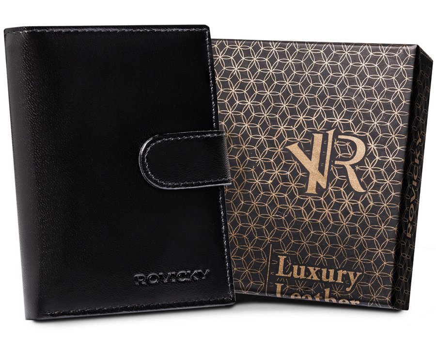 | Nazwa: | Portfel męski skórzany na karty i gotówkę z ochroną RFID na prezent czarny Rovicky |