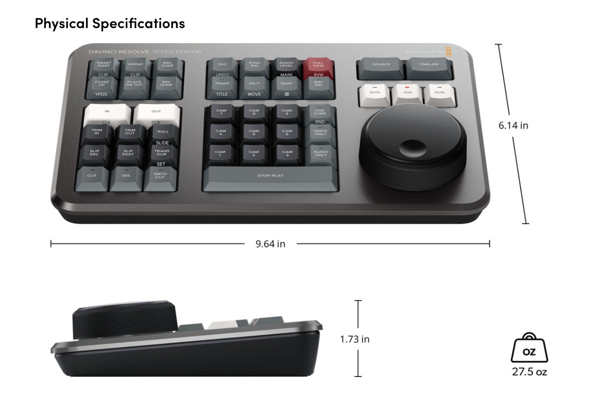 Blackmagic Design DaVinci Resolve Speed Editor ( bez licencji Davinci Resolve STUDIO )