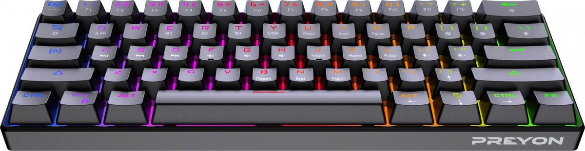PREYON Brown All Claw Klawiatura mechaniczna PREYON Brown All Claw - czysta przyjemność grania. Bezprzewodowy 2.4G BT x3 urządzenia przewodowy Odpinany kabel Podświetlenie RGB ...