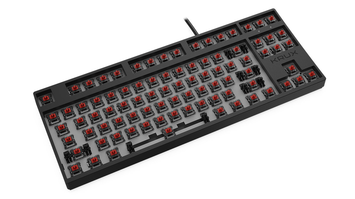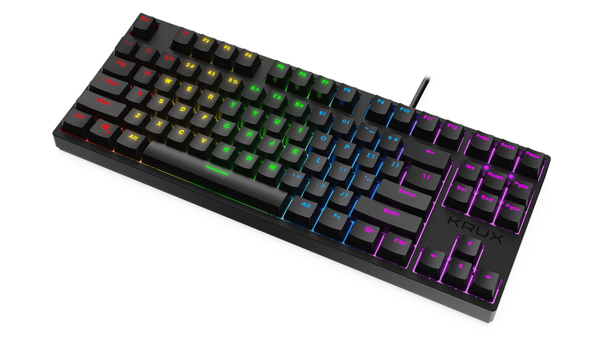 Klawiatura MECHaniczna KRUX ATAX RGB Outemu Red to klawiatura bez bloku numerycznego, w żargonie gamingowym nazywana TKL. Sprzęt idealny dla mobilnych graczy którzy ponad zbędny blok numeryczny preferują kompaktowe wymiary i mobilność sprzętu którym się posługują.