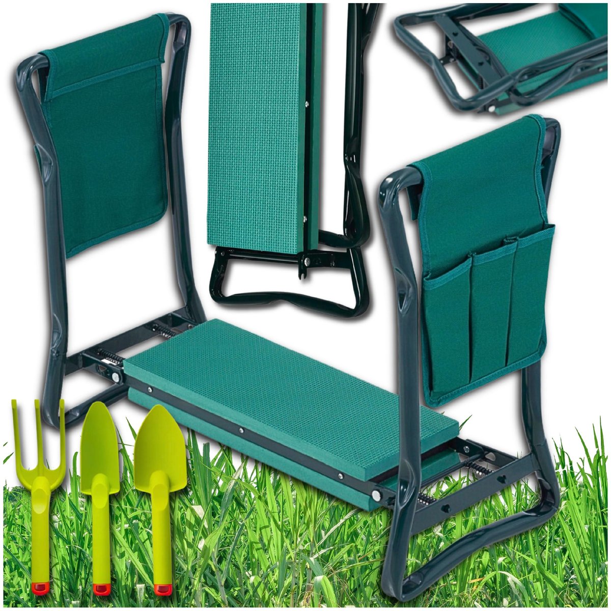 ⭐ KLĘCZNIK OGRODOWY TABORET SKŁADANY WYGODNE KRZESŁO STOŁEK 3w1 + 2 x PRZYBORNIK ⭐