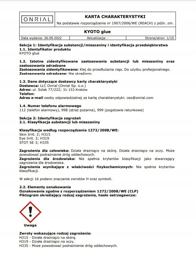 Profesjonalny klej do przedłużania rzęs ONRIAL KYOTO to produkt premium dla zaawansowanych stylistek z dużym doświadczeniem. Na tle innych preparatów wyróżnia się ekstremalnie krótkim czasem wiązania – przyczepność gwarantowana jest już po 0,1 sekundy! Szybkie tempo pracy wymaga jednocześnie niezwykłej precyzyjności. Jeżeli więc praca pod presją czasu nie jest Ci straszna, a chcesz skrócić czas wykonywania zabiegów – klej KYOTO znakomicie sprawdzi się w Twoim salonie.