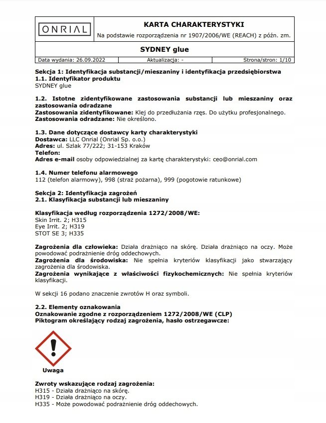 | Nazwa: | Klej do przedłużania rzęs ONRIAL SYDNEY 5 ml 1 sec |