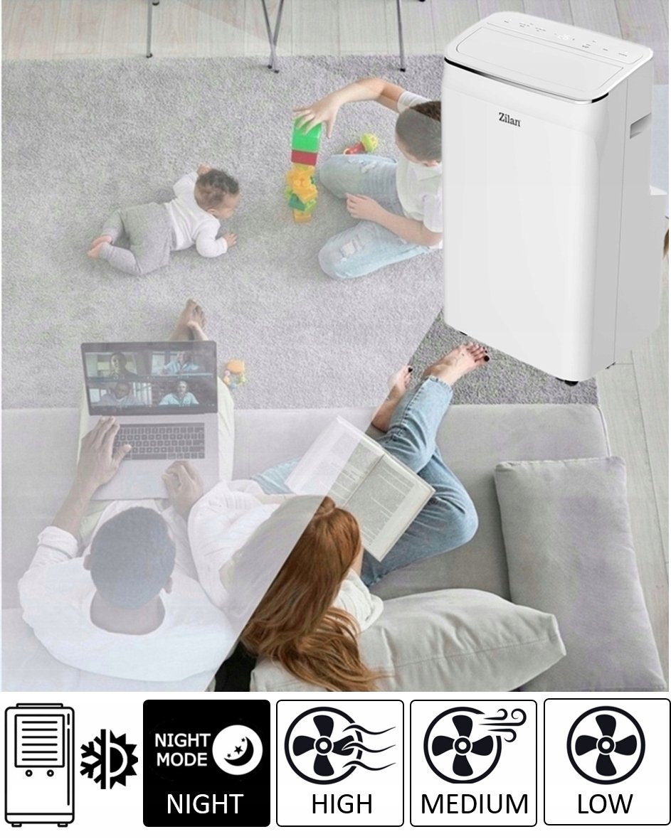 KLIMATYZATOR PRZENOŚNY 3,53kW 12000BTU PILOT WIFI + USZCZELKA Zilan W-Lock ☑️ KLIMATYZATOR PRZENOŚNY ZILAN ZLN1054STEROWANIE: PILOT + APLIKACJA WIFIDOTYKOWY PANEL ...