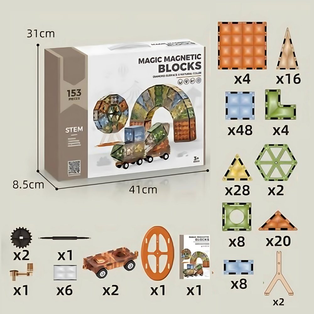 ✅ Silne magnesy – każdy element zestawu posiada mocne magnesy, które zapewniają stabilne połączenia i umożliwiają tworzenie trwałych konstrukcji. To zabawa bez frustracji!