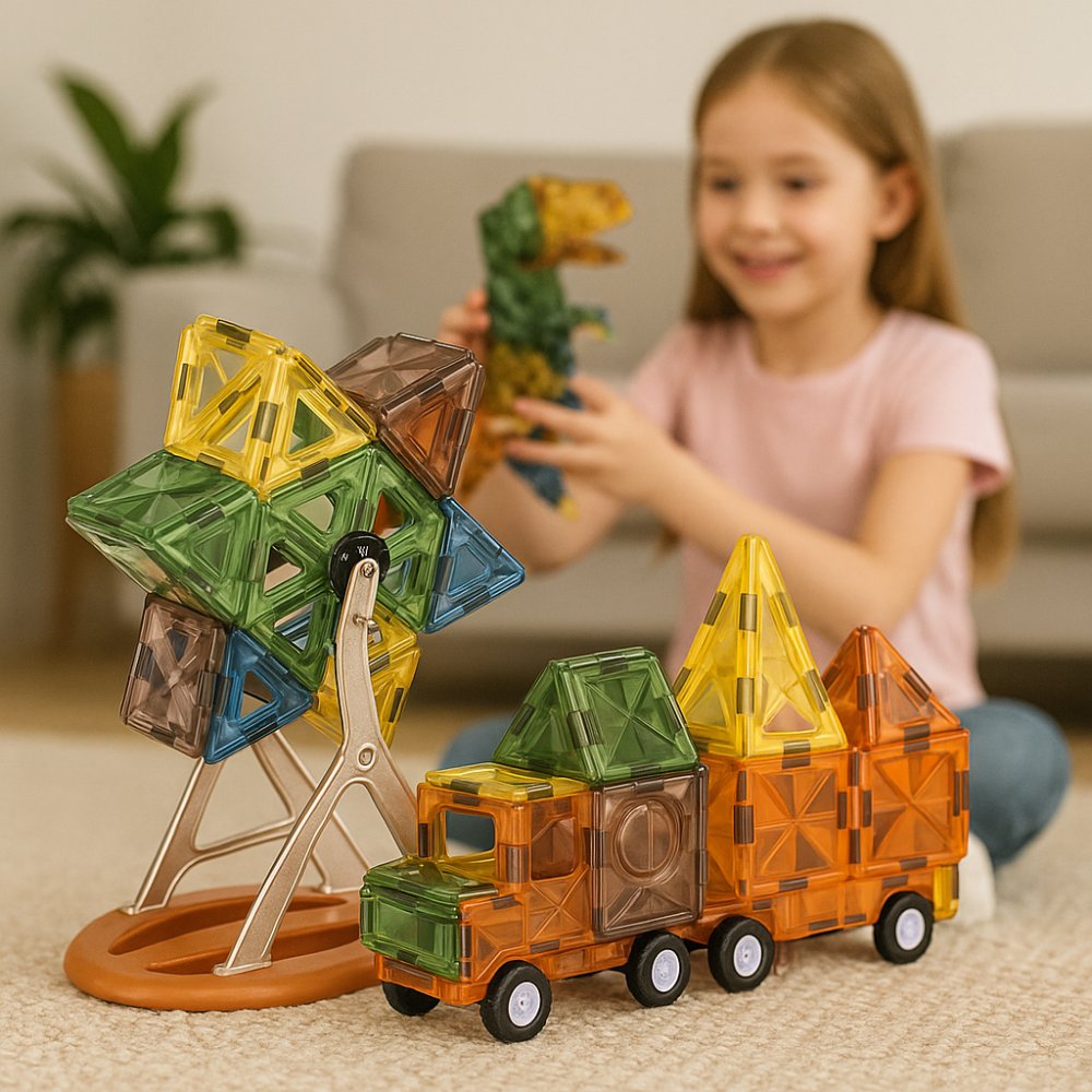 ✅ Kreatywna zabawa 3D – klocki magnetyczne pozwalają na tworzenie zarówno płaskich, jak i przestrzennych konstrukcji. Dzieci mogą budować domki, pojazdy, zwierzęta, a nawet własne roboty!