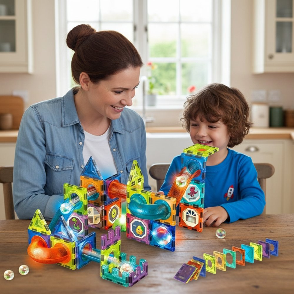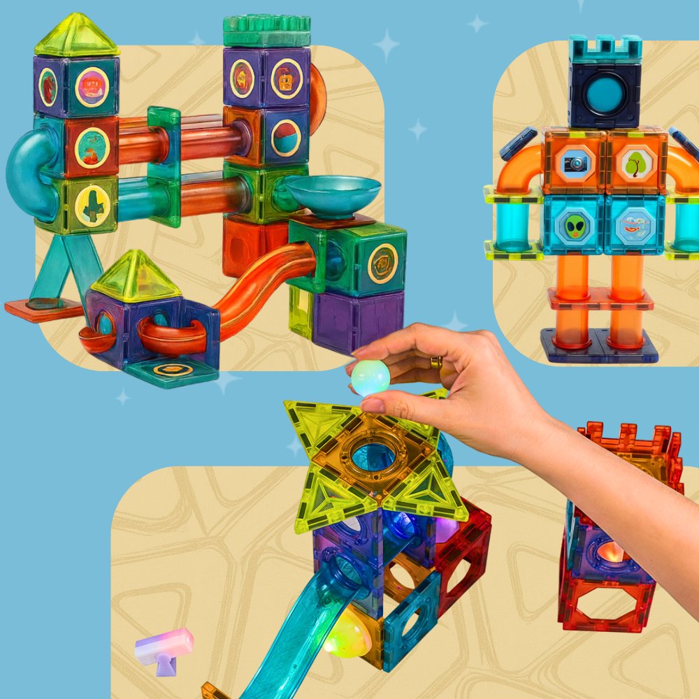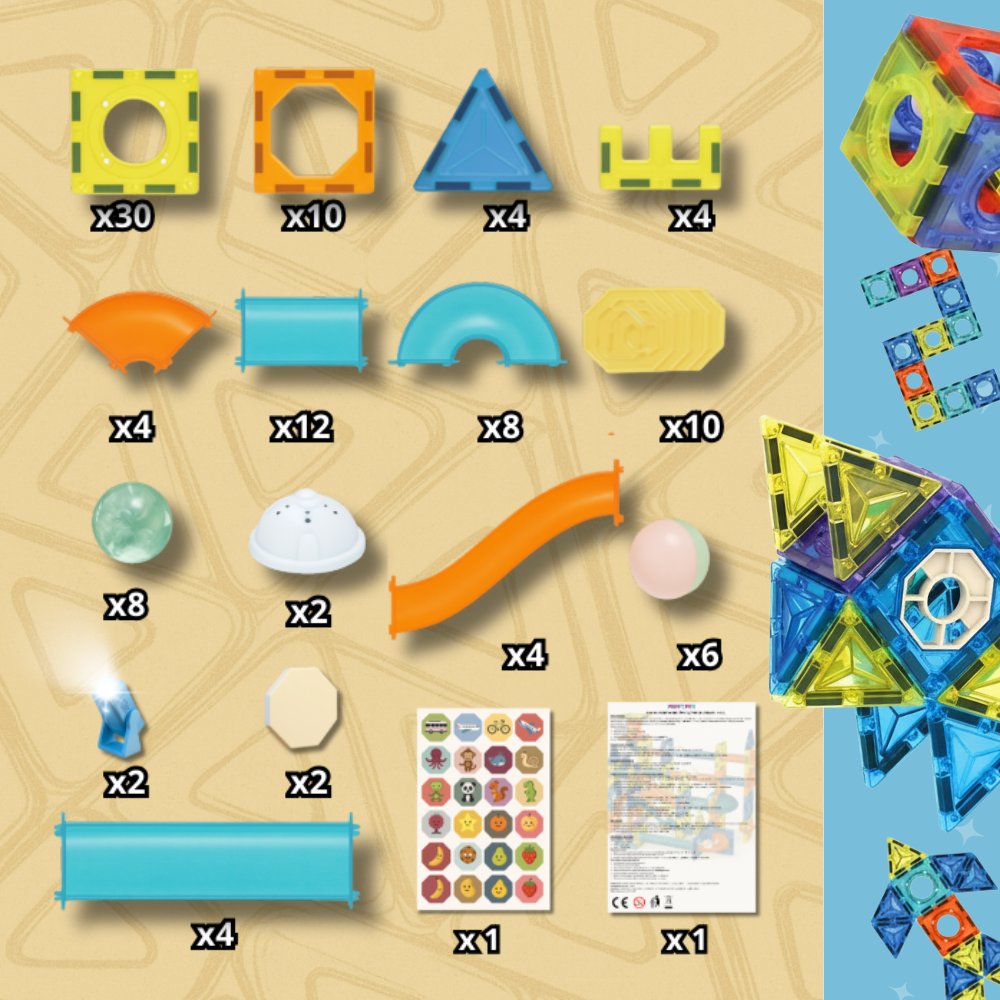 Klocki MAGNETYCZNE KONSTRUKCYJNE DUŻE Tor Kulkowy Edukacyjne Zestaw 110el Klocki MAGNETYCZNE KONSTRUKCYJNE DUŻE Tor Kulkowy Edukacyjne Zestaw 110el✨ Świecące klocki ...