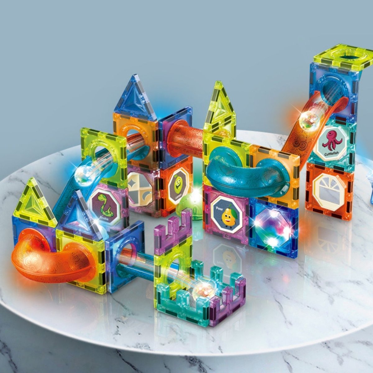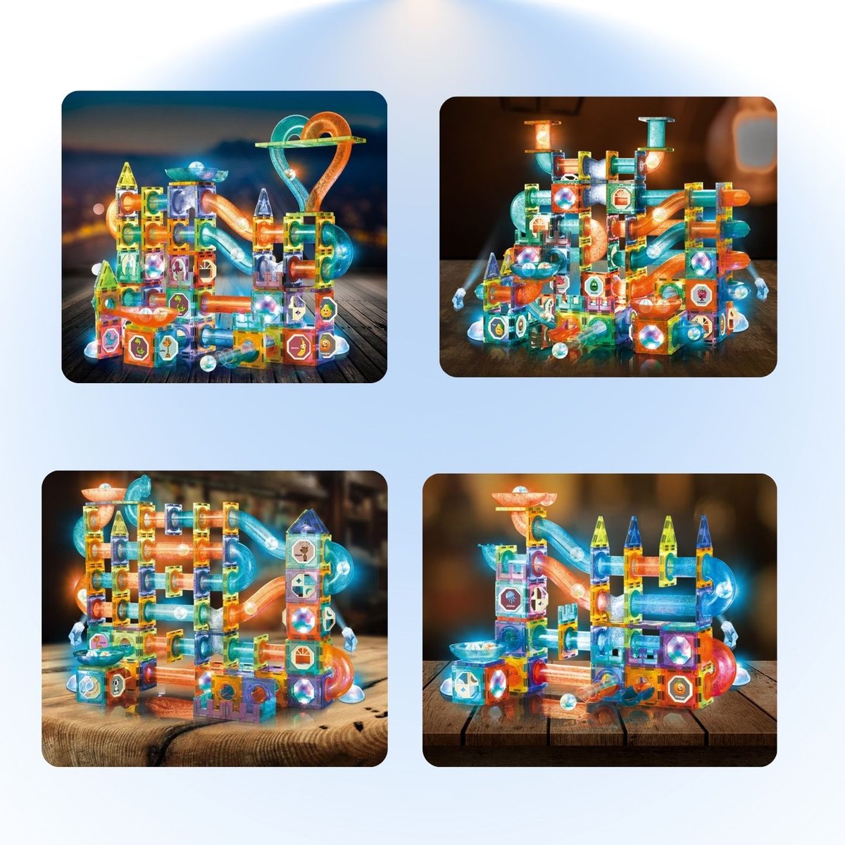 \n\n"}],"visibility":""},{"items":[{"type":"IMAGE","url":"7","width":"50"},{"type":"TEXT","content":"Można z nich stworzyć niesamowite budowle, świecący tor kulkowy, wieże i wiele innych kombinacji.