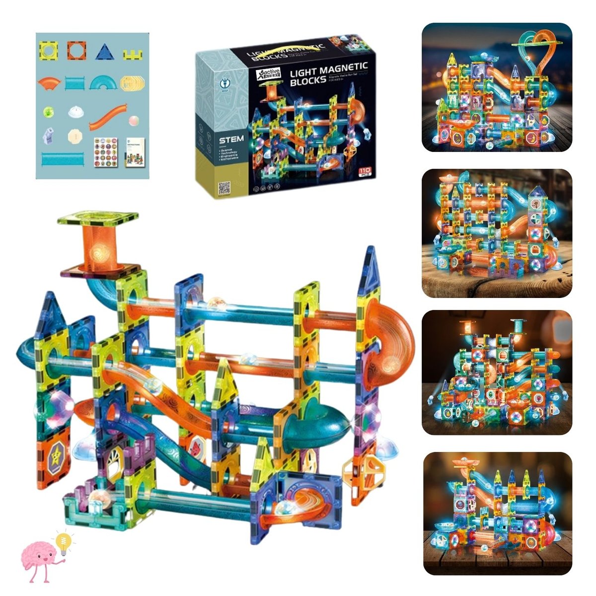 Zestaw świecących klocków magnetycznych -110 elementów!
