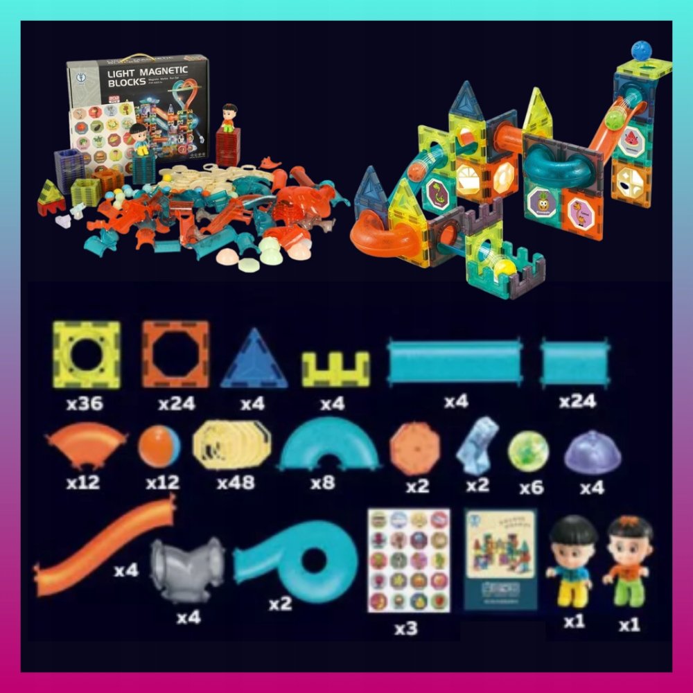 | Nazwa: | Klocki MAGNETYCZNE KONSTRUKCYJNE Tor kulkowy ŚWIECĄCY 202 el Zestaw dziecko |