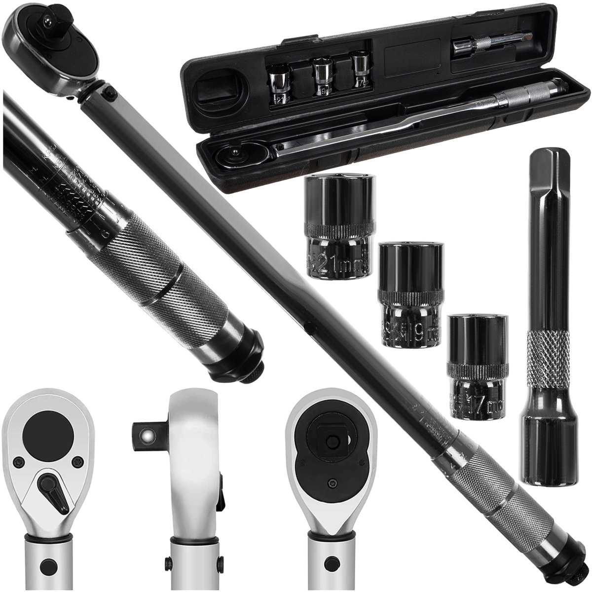 Klucz dynamometryczny 1/2 28-210 Nm z blokadą do kół + 3 nasadki 17 19 21 mm i certyfikat kalibracji BIGSTREN! ✔️ zakres pracy 28-210 Nm - klucza użyjesz zarówno w warsztacie, jak i w