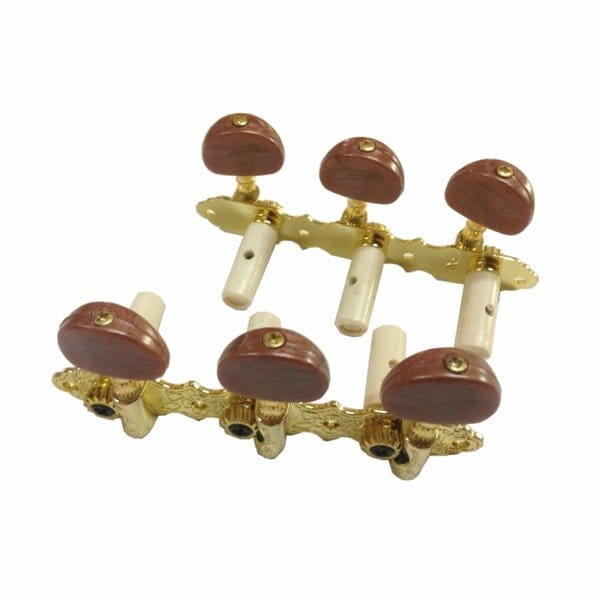 Dobrze wykonane klucze z łatwością trzymają strój w gitarze klasycznej i są precyzyjne. Trzpienie na struny oraz końcówki kluczy wykonano z trwałego tworzywa, a szyny oraz elementy ruchome z metalu malowanego na złoty kolor. Główki kluczy mają piękny perłowo-brązowy kolor, dodając elegancji.