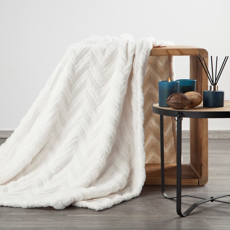 Właśnie zrecenzowałem Koc 170x210 Jodła kremowy – puszysty koc z miękkiego polaru z wzorem jodełki