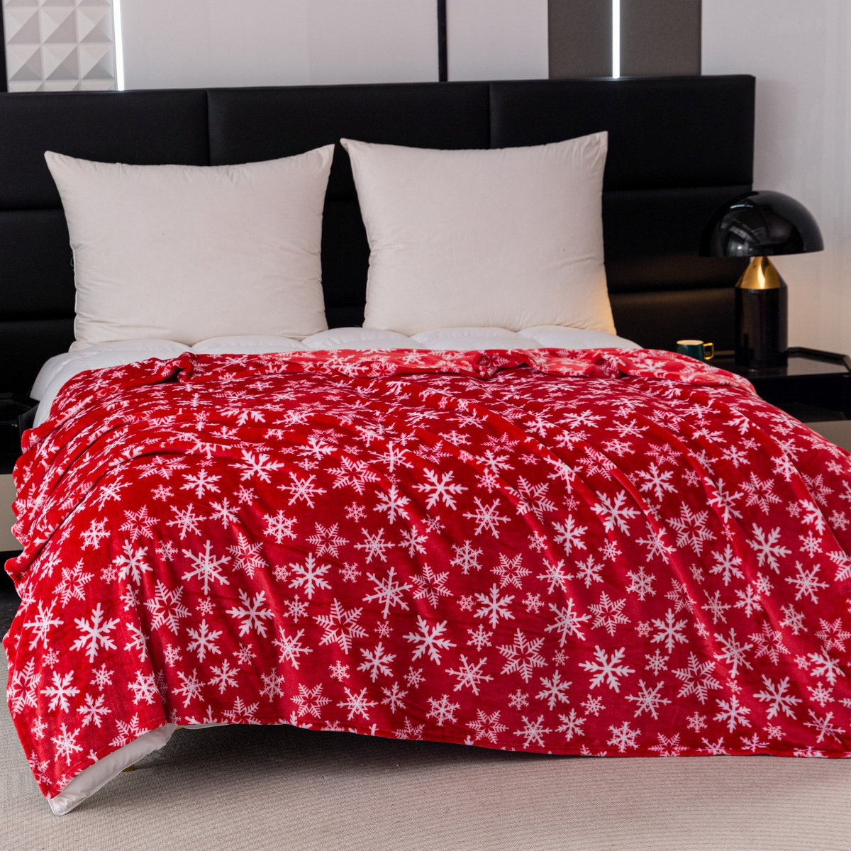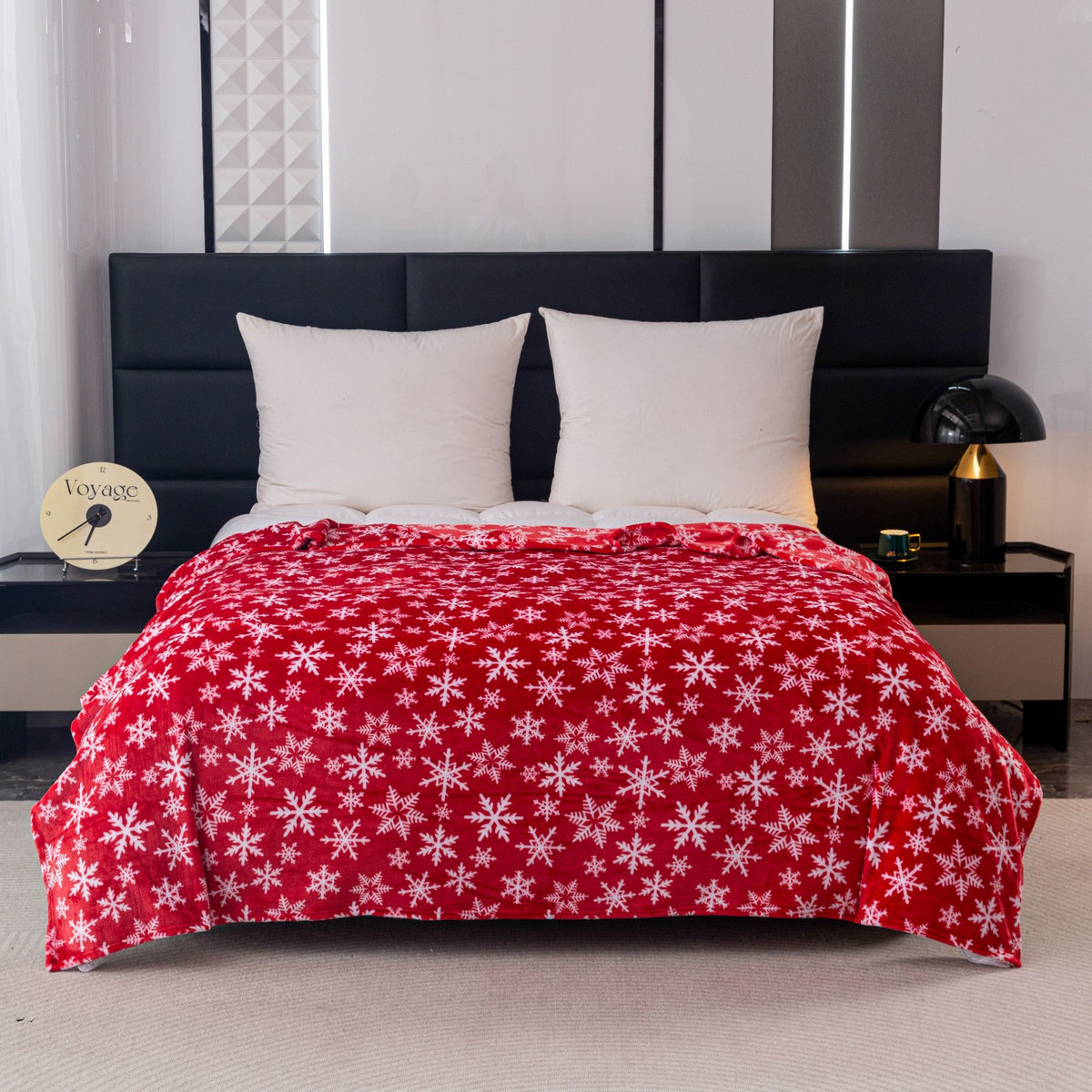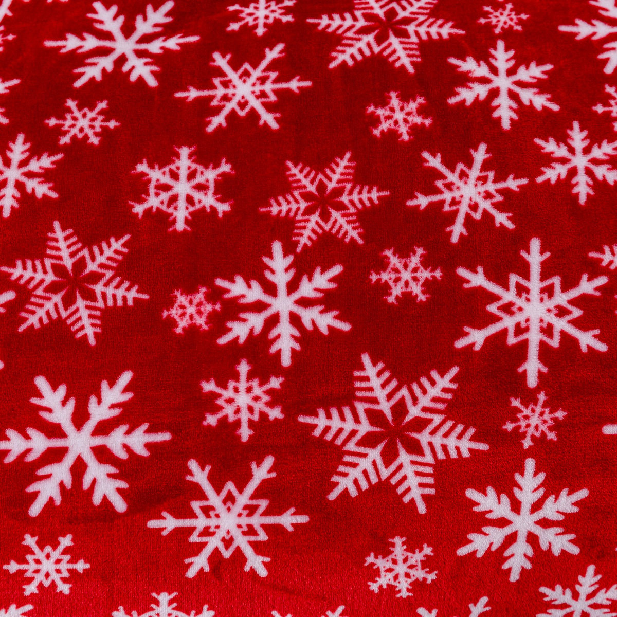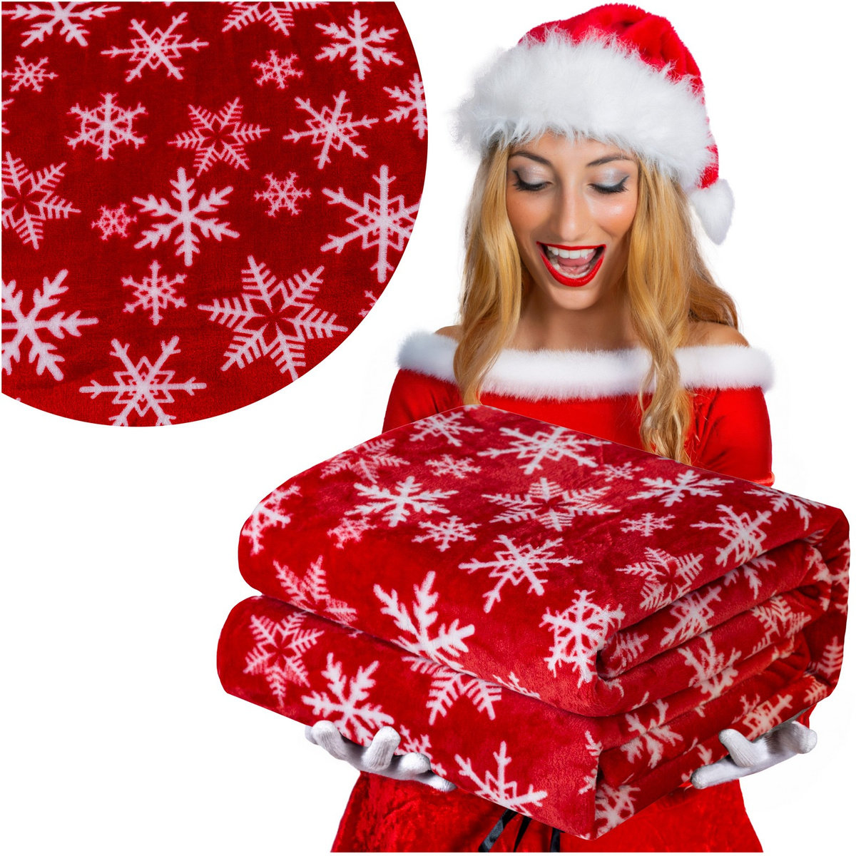 Świąteczny wzór w białe śnieżynki na czerwonym tle doda Twojemu wnętrzu odrobiny magii i klimatu Bożego Narodzenia. Niezależnie od tego, czy umieścisz go na kanapie, czy w sypialni, koc wprowadzi ciepło i radość, stając się pięknym elementem dekoracyjnym.