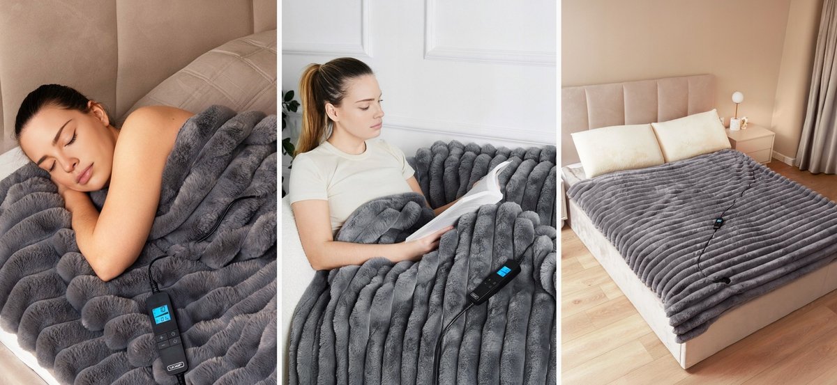 ✅ Wygoda użytkowania - zaplanuj czas włączenia i wyłączenia koca, co umożliwia nagrzanie łóżka przed snem lub automatyczne wyłączenie się w nocy