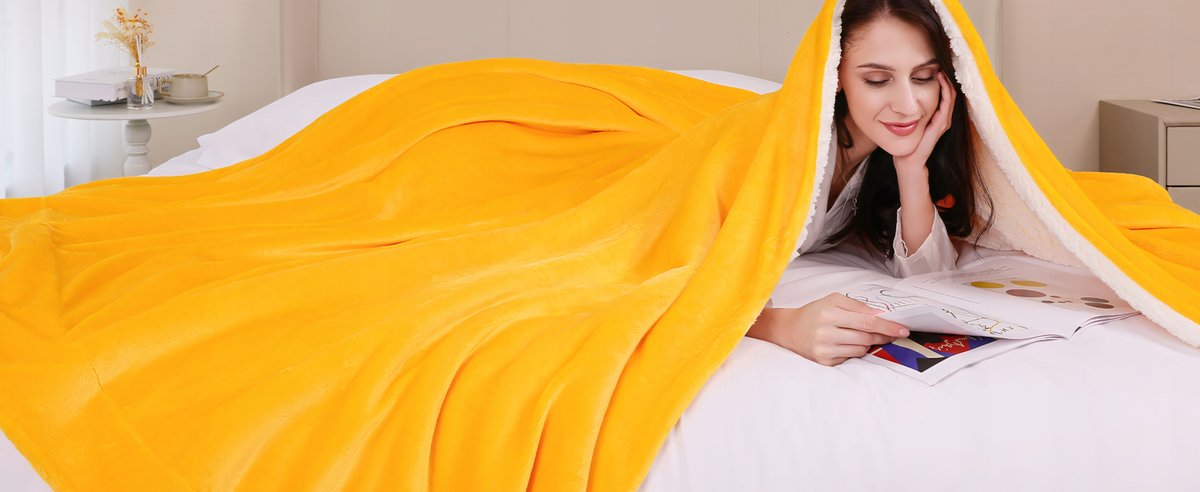 Właśnie zrecenzowałem Koc Narzuta Na Kanapę Łóżko Miękki Ciepły Sherpa Dwustronny Żółty 130X160Cm