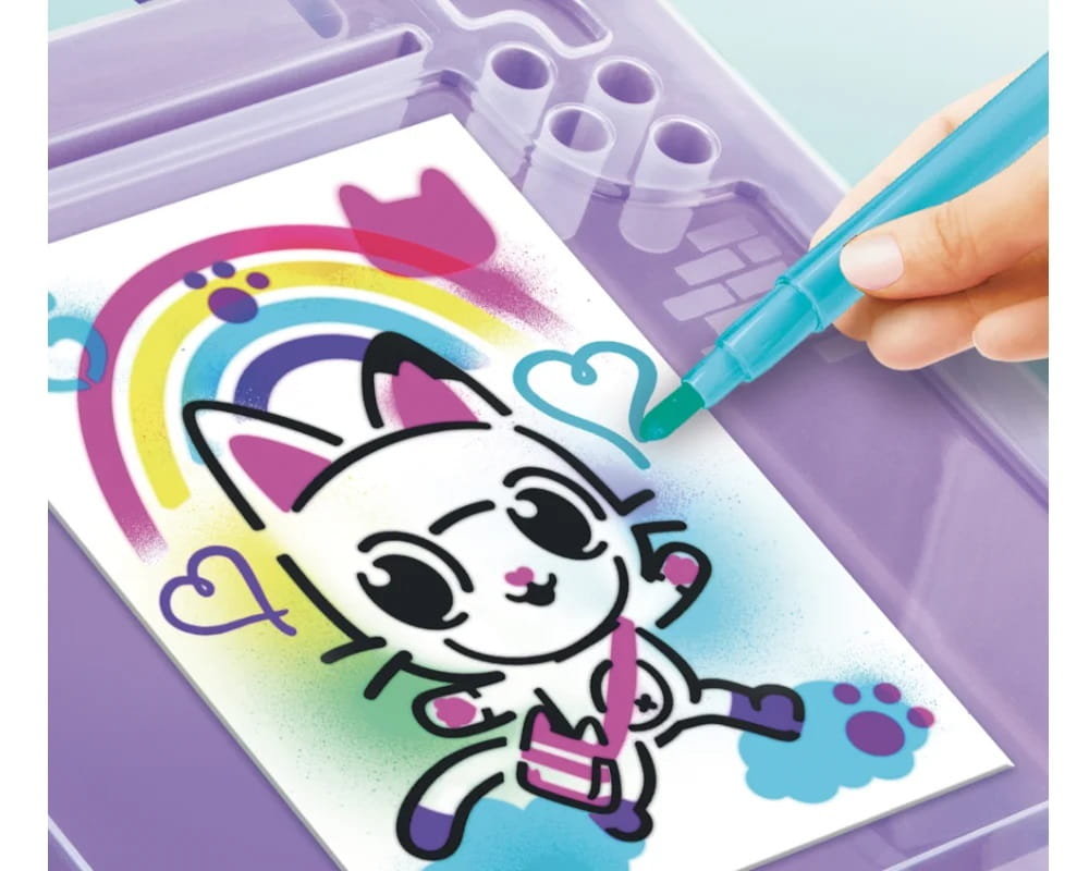 Walizeczka kociej artystki z linii Koci Domek Gabi to idealny zestaw dla małych artystek, umożliwiający tworzenie kreatywnych projektów za pomocą aerografu. Walizeczka zawiera 8 markerów, 10 szablonów, arkusz naklejek i papier do tworzenia wyjątkowych dzieł sztuki. Dodatkowo, w zestawie znajdują się masy plastyczne, foremki oraz mata, co pozwala na różnorodną zabawę artystyczną. Zestaw jest wygodny do przenoszenia, idealny dla fanów Kociego Domku Gabi.
