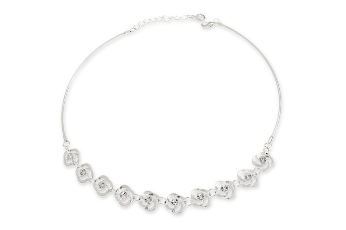 Naszyjnik kwiatuszki z cyrkoniamiposrebrzany Piękny naszyjnik w klasycznym stylu podkreślony mnóstwem mieniących się cyrkonii. Posiada zapięcie z regulacją które umożliwia dopasowanie ...