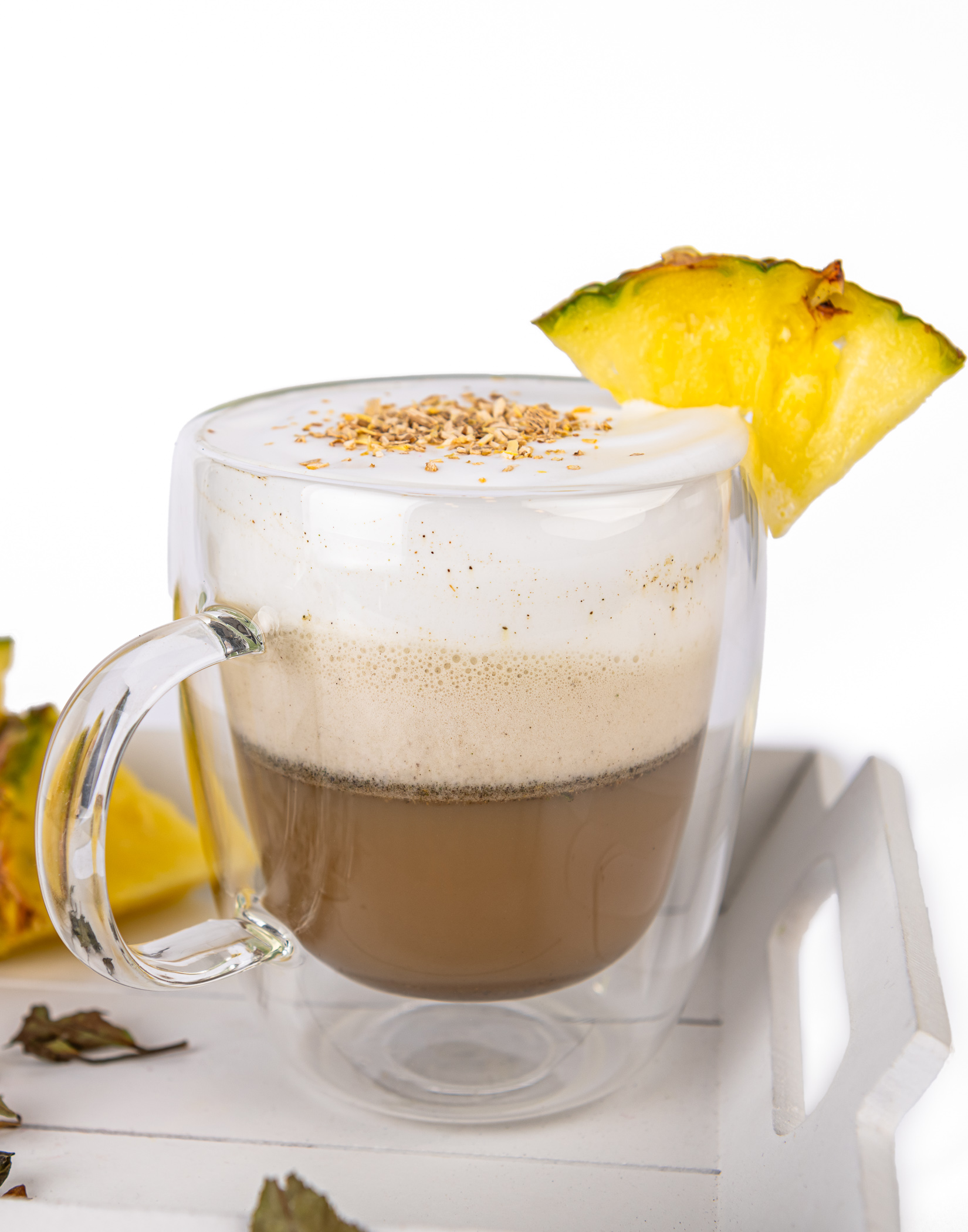| Skład: | Mleko kokosowe w proszku, herbata biała, ananas liofilizowany, ashwaganda, maca proszek, lucuma |