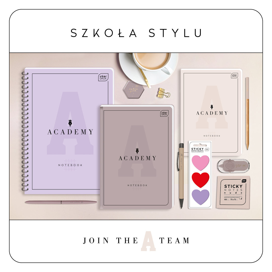 Academy to kolekcja papiernicza premium stworzona z myślą o uczniach i studentach, którzy cenią sobie styl, jakość produktu i komfort pisania. Nasze produkty Academy powstały z myślą o każdym detalu – grube kartki 90 g, miłe w dotyku i eleganckie wykończenie okładki czy zaokrąglone rogi zagwarantują najwyższą przyjemność ich użytkowania. Dzięki szerokiemu i różnorodnemu asortymentowi Academy każdy znajdzie dla siebie zeszyt, kołozeszyt czy brulion w idealnym dla siebie formacie.