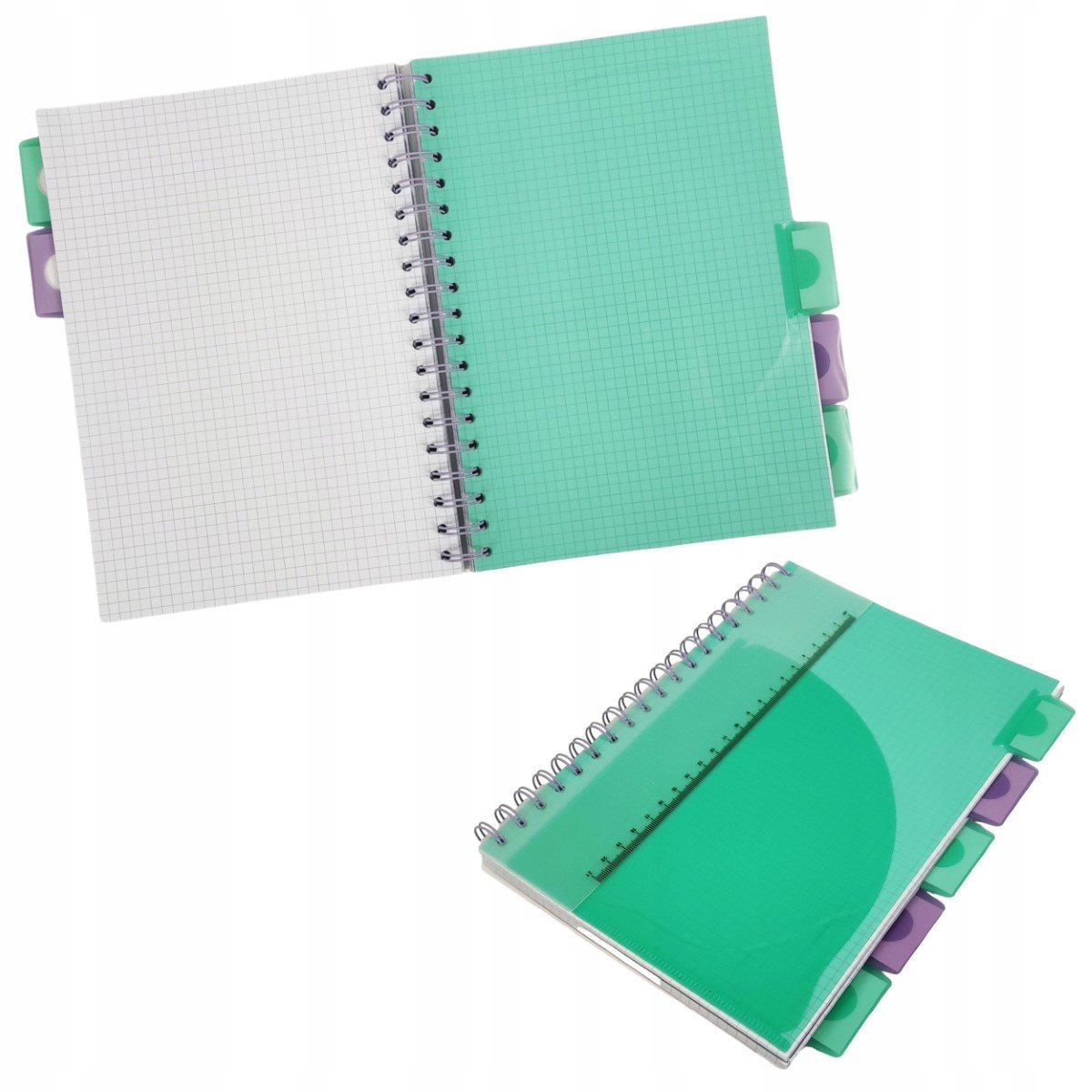 Kartki w kołobrulionie są w kratkę, co ułatwia prowadzenie równych linii i zorganizowanego zapisu.