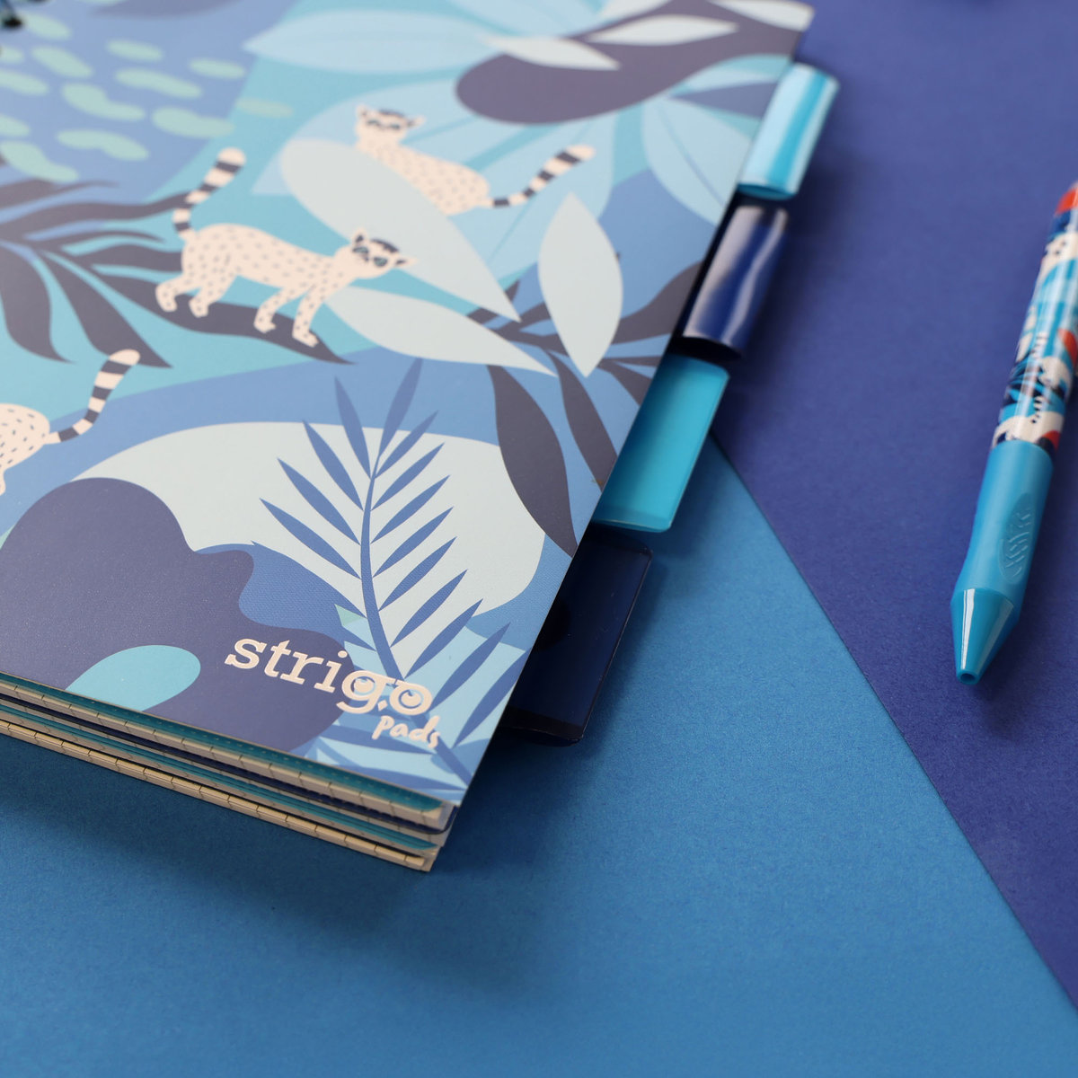 Kołozeszyt Strigo Pads z kolekcji Jungla w niebieskim odcieniu to nie tylko funkcjonalny element wyposażenia szkolnego, ale także modny dodatek, który zachwyci swoją estetyką.