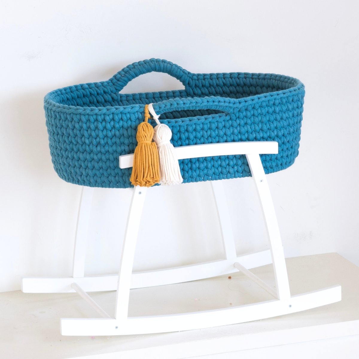 Właśnie zrecenzowałem Kołyska dla lalki- Kosz Mojżesza (TURKUSOWY z materacem, zestawem pościeli, frędzlami + bujak drewniany BIAŁY