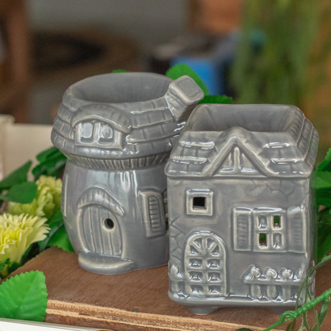 Kominek zapachowy domek szary, podgrzewacz ceramiczny do olejków i wosków Kominek zapachowy domek szary do aromaterapiiSzary Kominek Zapachowy Dom Szeregowy to wyjątkowe ...