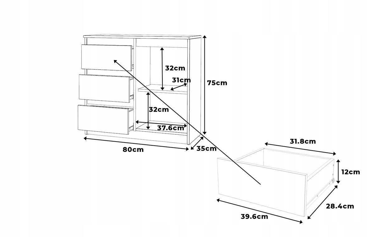 - Ukrycie bałaganu: Szuflady pozwalają szybko schować przedmioty, które mogą tworzyć bałagan na powierzchni komody, utrzymując porządek w pomieszczeniu.
