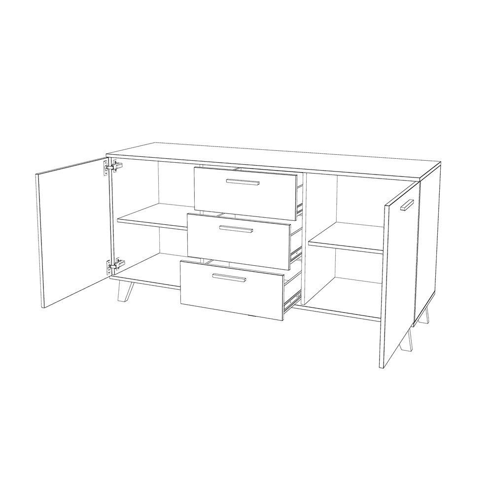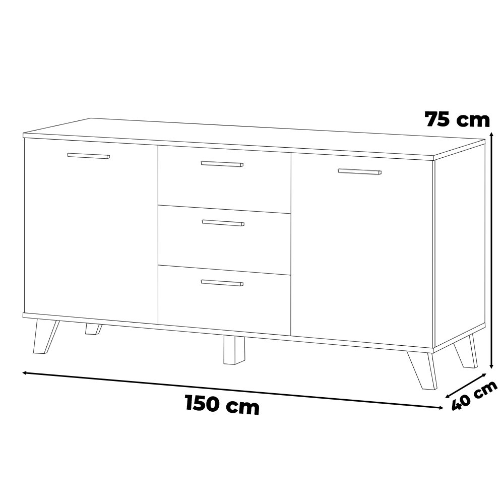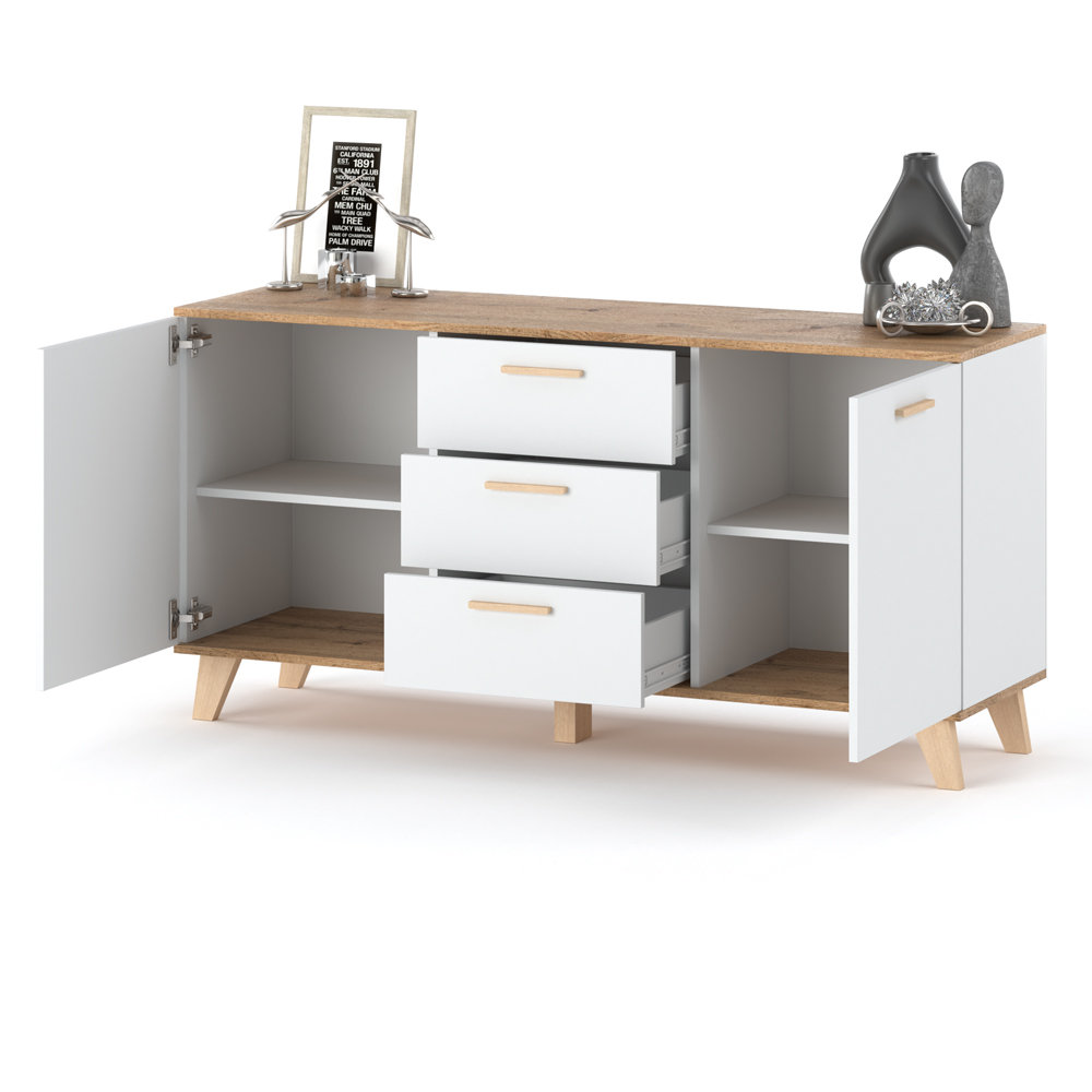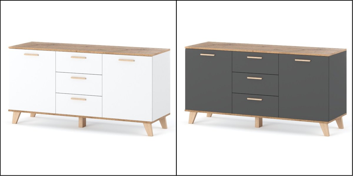 | Nazwa: | Komoda Biała Z Drewnem Olivier 150cm Pojemna Szafka Rtv Z 3 Szufladami |