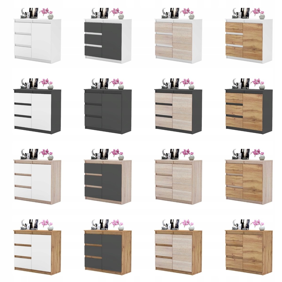 Oszczędność miejsca: Dzięki modułowości możesz dostosować rozmiar komody do dostępnej przestrzeni.