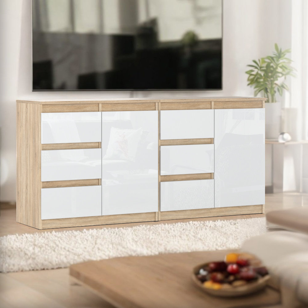 | Nazwa: | Komoda Do Salonu Pojemna Duża Sypialni 6 Szuflad Dąb Sonoma Biały Połysk |