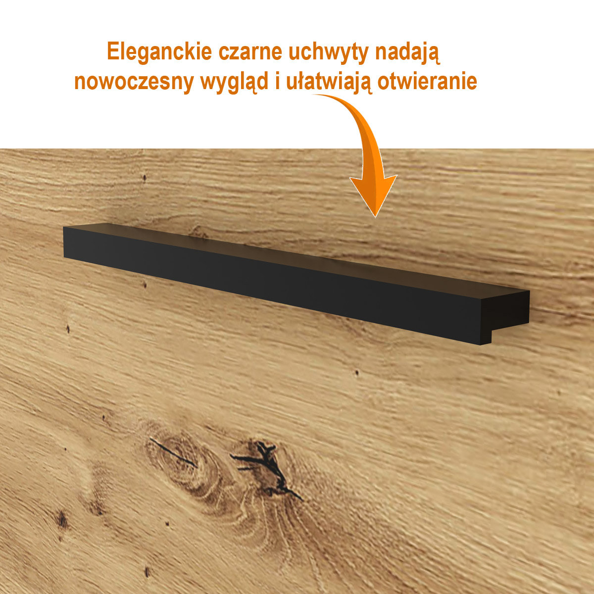 Kolorystyka: dąb artisan, czarne nogi, czarne uchwyty