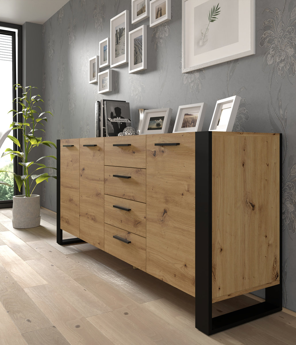 Właśnie zrecenzowałem Komoda Nuka K 197 Cm 4 Szuflady, Dąb Artisan / Czarny Mat